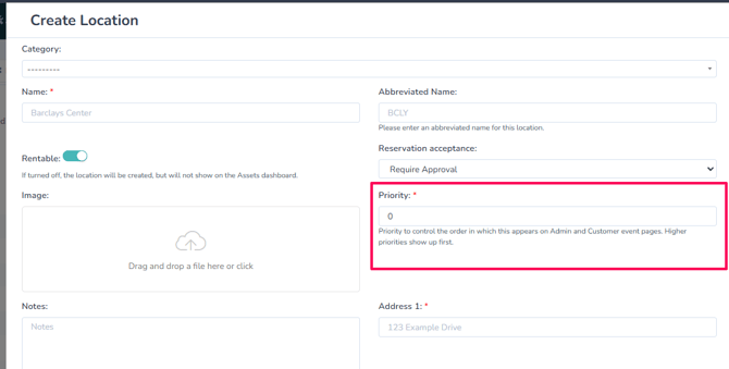 Priority to control the order in which this appears on Admin and Customer event pages. Higher priorities show up first.